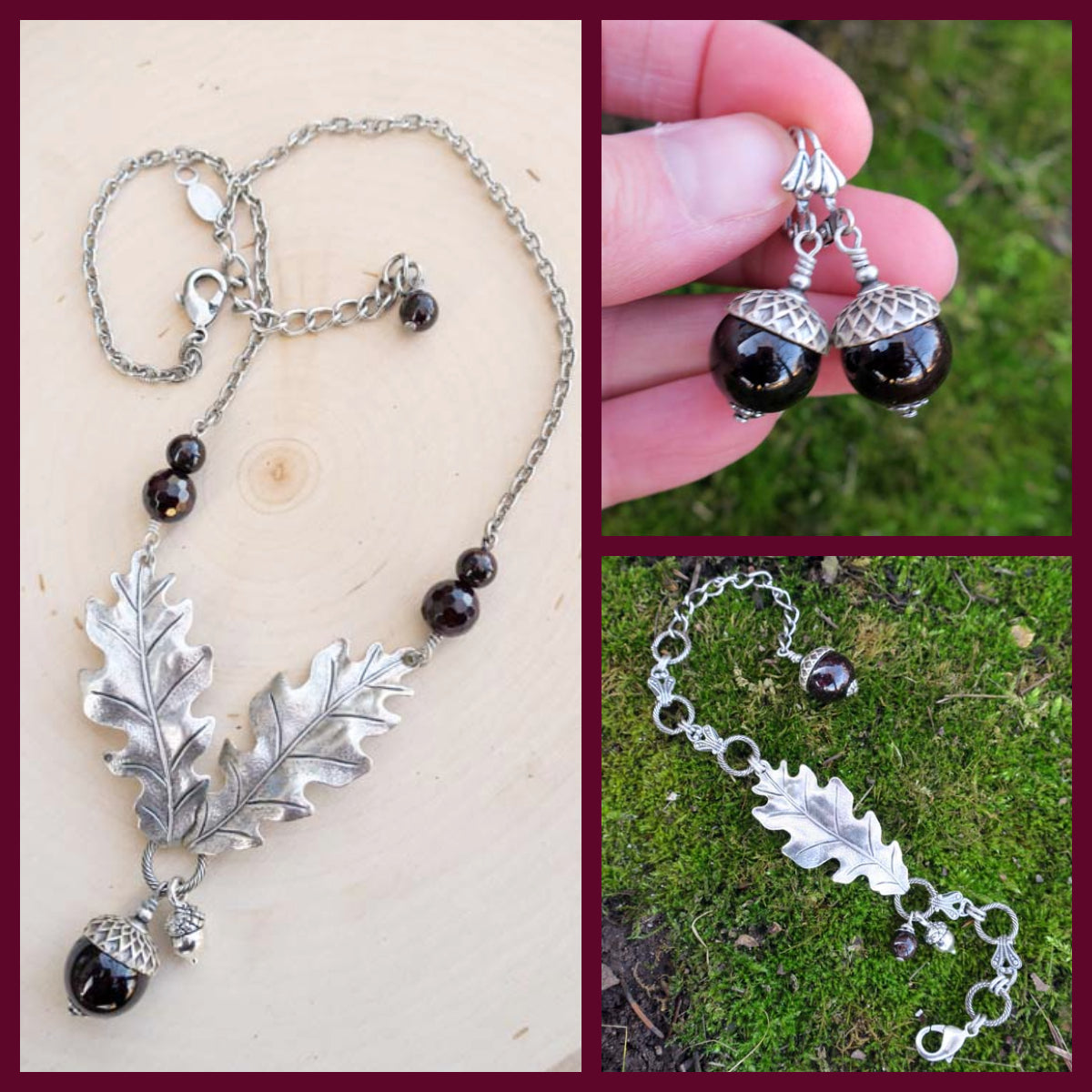 Oak leaf and acorn inspired jewelry and adornments using Swarovski Crystal Pearls...