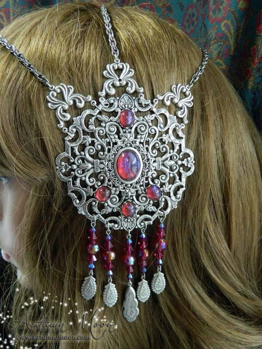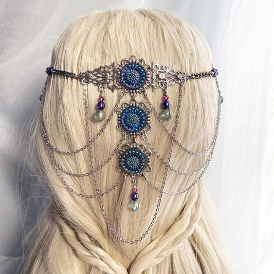 If you are looking to complete your ensemble for a festival, a fantasy bridal look or just feel like royalty for a day, Christina has created some beautiful head pieces for you. Here, you'll find fantastical circlets with draping chains, mystical hair-clips, Renaissance inspired adornments, and nature inspired circlets, crowns, and fascinators Items in this gallery are ready to ship.