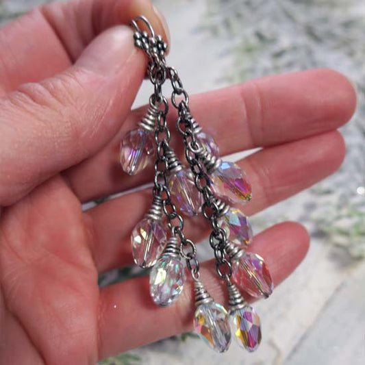 HECATE Triple Moon Necklace - Multi-color Black Glass Opal