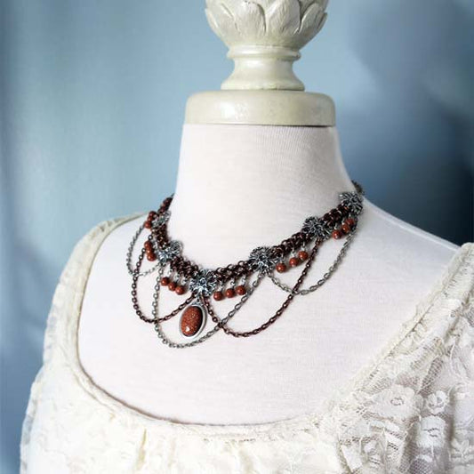 FREYA Statement Necklace with Goldstone Stones