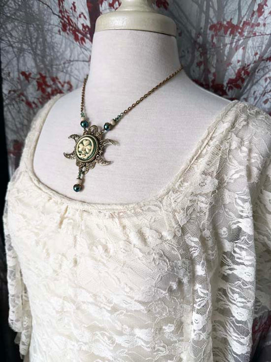 IRISH GODDESS Triple Moon Necklace - Antique Brass