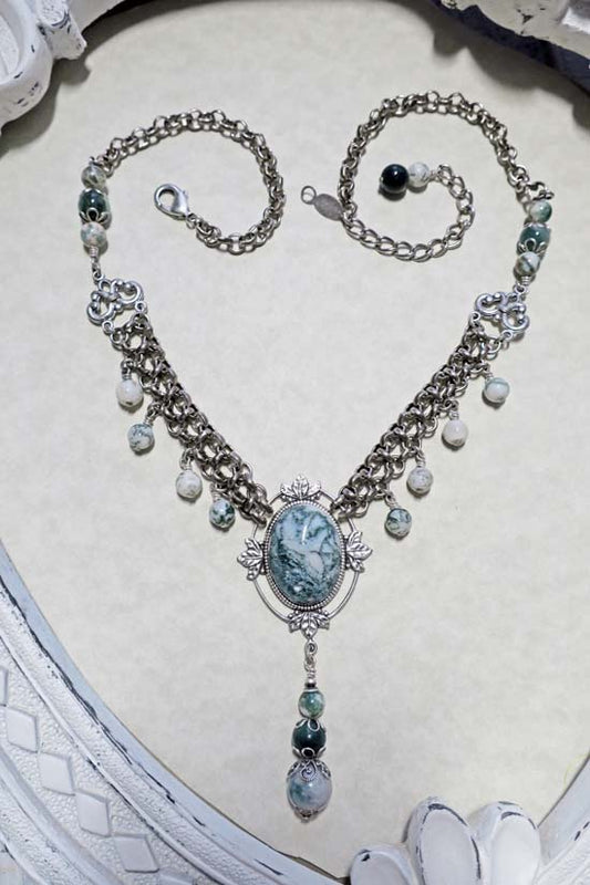 THE VISIONARY Statement Necklace with Tree Agate Stones