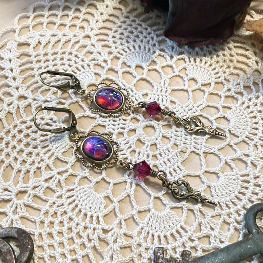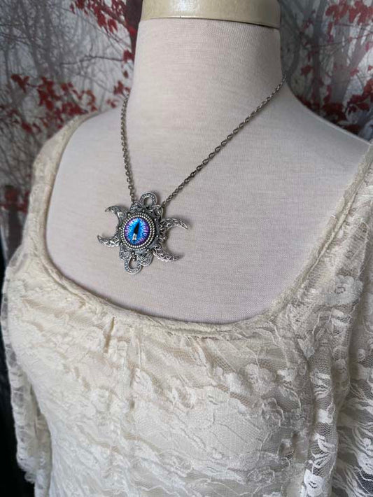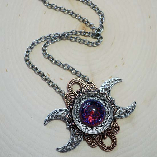FIRE AND ICE Triple Moon Necklace - Dragon's Breath Glass Opal