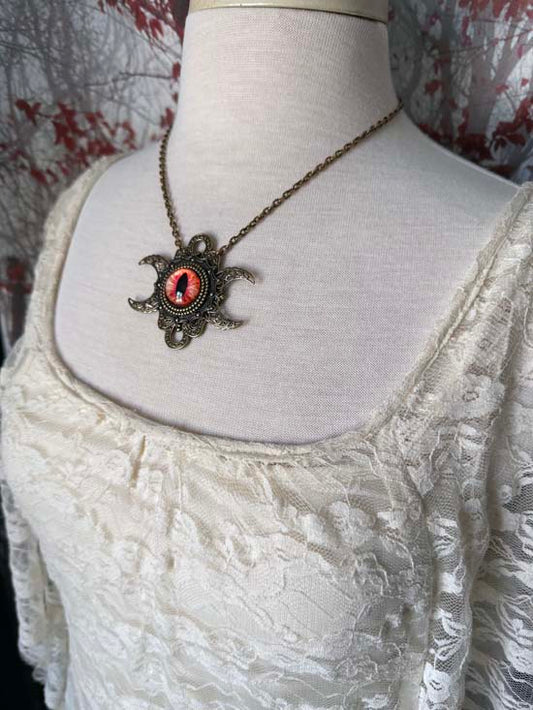 THE SEER Triple Moon Necklace - red eye - antique brass