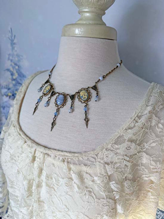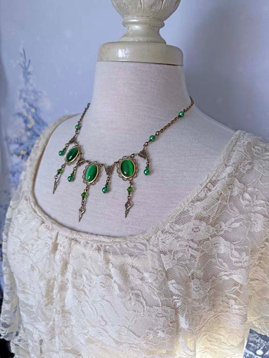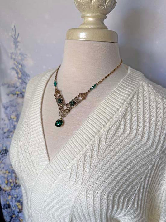 Feel like royalty with jewelry and adornments inspired by the Renaissance Era. These statement pieces are handmade with antique brass and antique silver metal stampings, sparkling crystals and genuine gemstones. Items in this gallery are ready to ship.