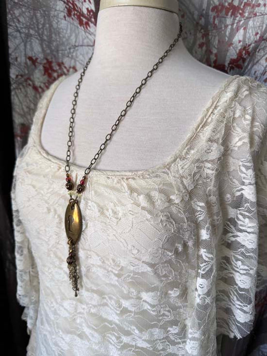 One of a kind Steampunk jewelry and adornments created with mixed metals, vintage keys, old watch parts, fabrics, lace and anything else that will fit the theme. Items in this gallery are ready to ship.