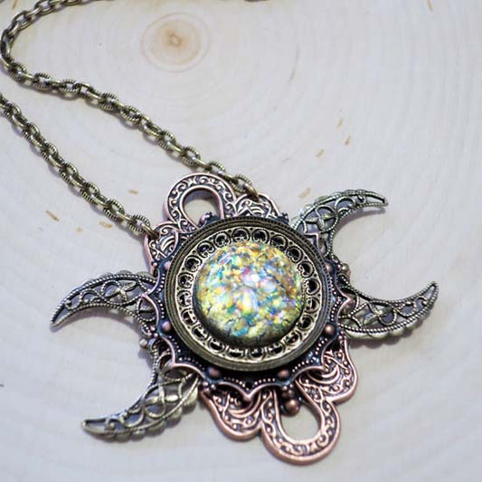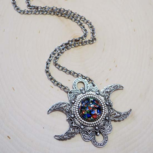 GODDESS of the FIRST HARVEST Triple Moon Necklace - Multi-Color Glass Opal
