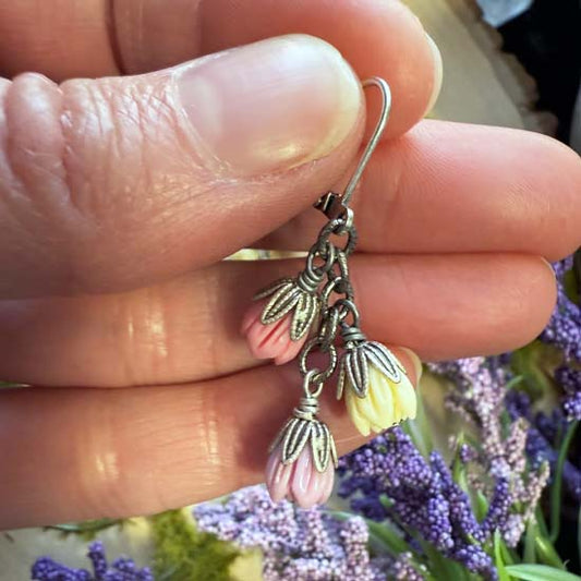 FAIRY LANTERN Earrings - grey shimmer w/antique silver