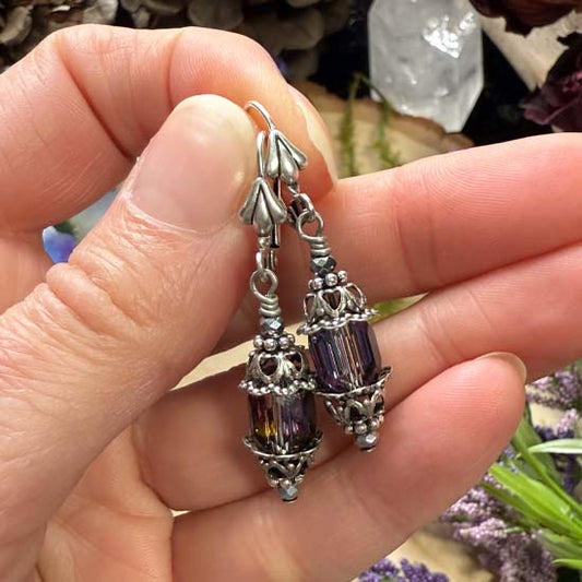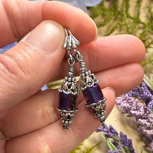 FAIRY LANTERN Earrings - purple shimmer w/antique silver