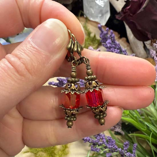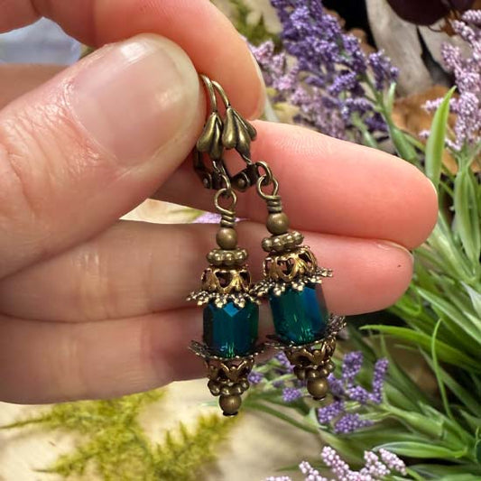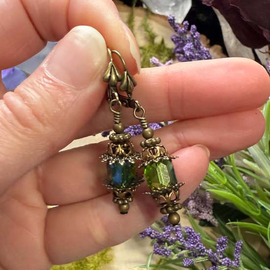 FAIRY LANTERN Earrings - emerald shimmer w/antique brass