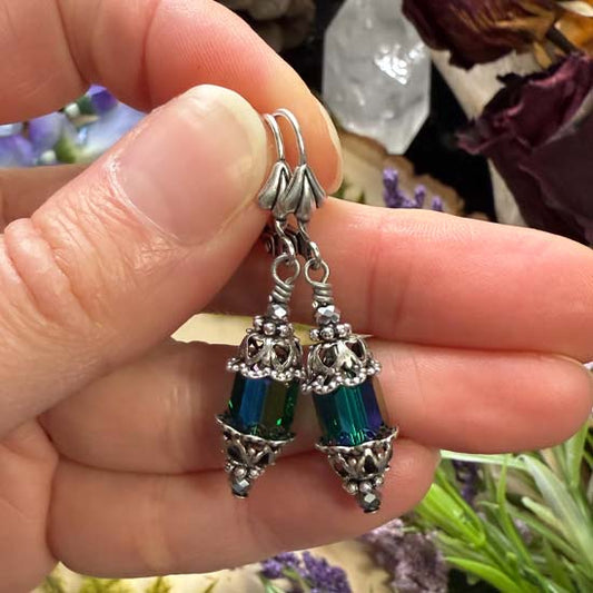 FAIRY LANTERN Earrings - emerald shimmer w/antique silver