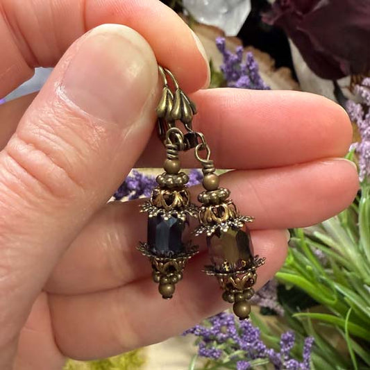 FAIRY LANTERN Earrings - purple shimmer w/antique brass