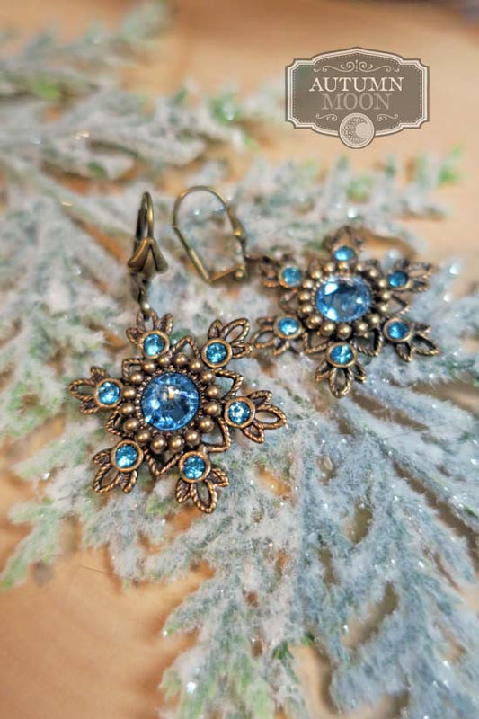 Flurries Collection - Frozen Snow Earrings - Aged Brass