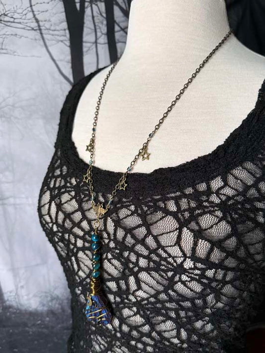 WITCH'S BROOM Necklace - Metallic Blue Kyanite and Blue Green Tiger Eye